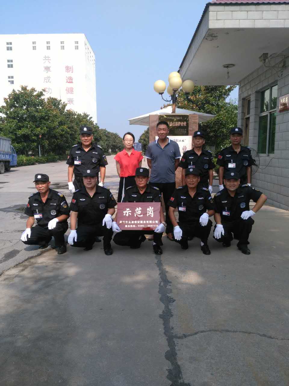 熱烈祝賀雪健面粉廠、市檢察院、漯河小學(xué)、市電視臺、市五一路小學(xué)、市新五中、沙北派出所、中糧面業(yè)(漯河)有限公司、經(jīng)濟(jì)開發(fā)區(qū)管委會崗點(diǎn)被授予示范崗,示范崗是樣板、是楷模,希望“示范崗”達(dá)標(biāo)的同志們珍惜和保持榮譽(yù),戒驕戒躁、再接再勵(lì),把客戶單位的安保工作做到更周到、更規(guī)范,同時(shí)也希望公司全體員工要以以上崗點(diǎn)同志為榜樣,虛心向他們學(xué)習(xí),提升服務(wù)質(zhì)量、塑造企業(yè)形象、贏得客戶滿意。