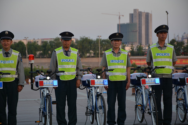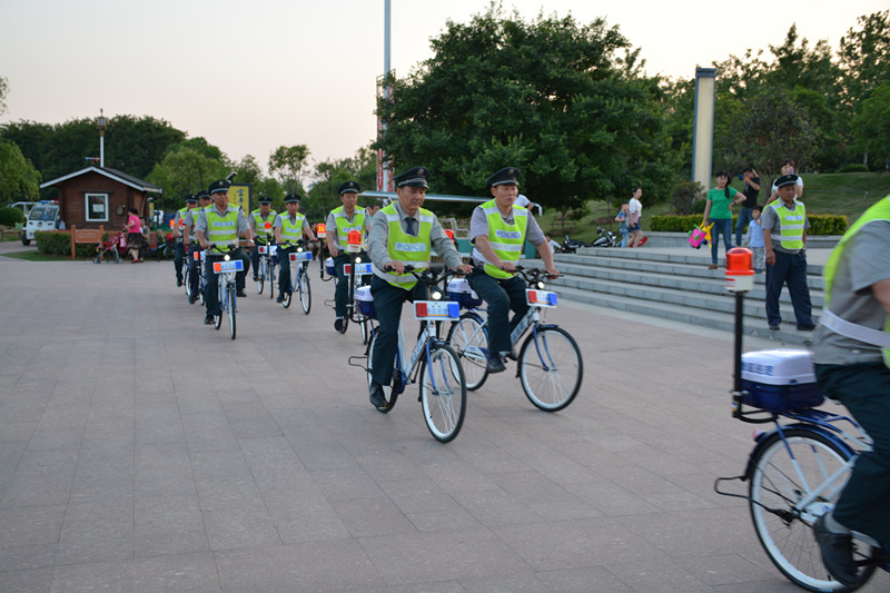 為配合漯河市沙澧河建管委開(kāi)展的“學(xué)習(xí)徐州云龍湖先進(jìn)經(jīng)驗(yàn),推進(jìn)景區(qū)管理水平再上新臺(tái)階”活動(dòng),為提高保安隊(duì)員的巡邏效率以及對(duì)突發(fā)事件的快速反應(yīng)能力,近日,漯河市金盾保安服務(wù)有限公司為沙澧河景區(qū)保安大隊(duì)配備了20輛警用自行車。