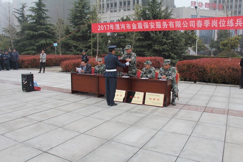 漯河市金盾保安服務(wù)有限公司本著“立足崗位練兵、重在集訓(xùn)提高”的練兵要求,公司從3月1日-3月30日開展全體隊(duì)員春季崗位大練兵活動,為確保這次“大練兵”活動有序開展,切實(shí)收到實(shí)效,上到公司總經(jīng)理,下到大隊(duì)長等公司相關(guān)人員積極探討,精心組織,周密安排,堅(jiān)持高標(biāo)準(zhǔn)、嚴(yán)要求,本次練兵活動于3月31日正式匯報(bào)演練。