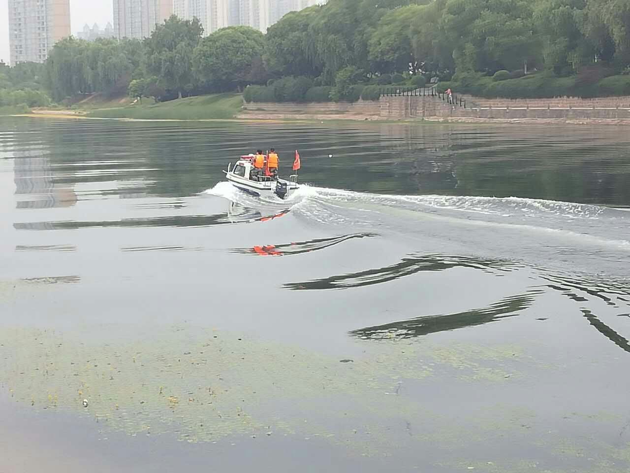 澧河水源保護巡邏艇 金盾保安隊員水上巡邏中