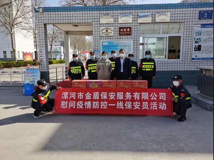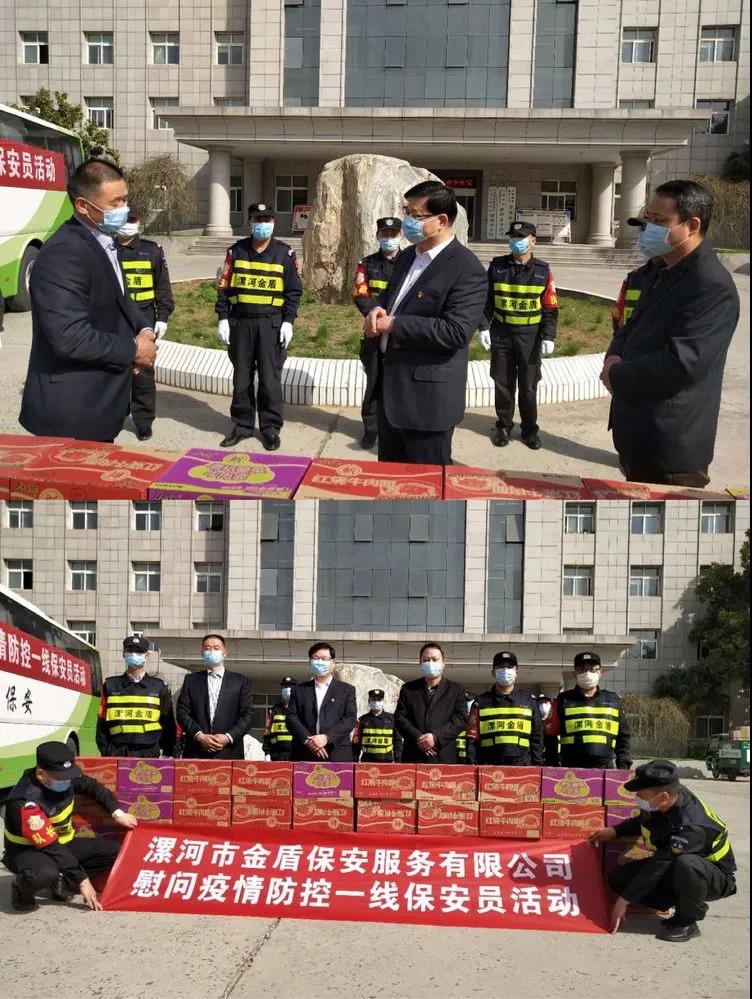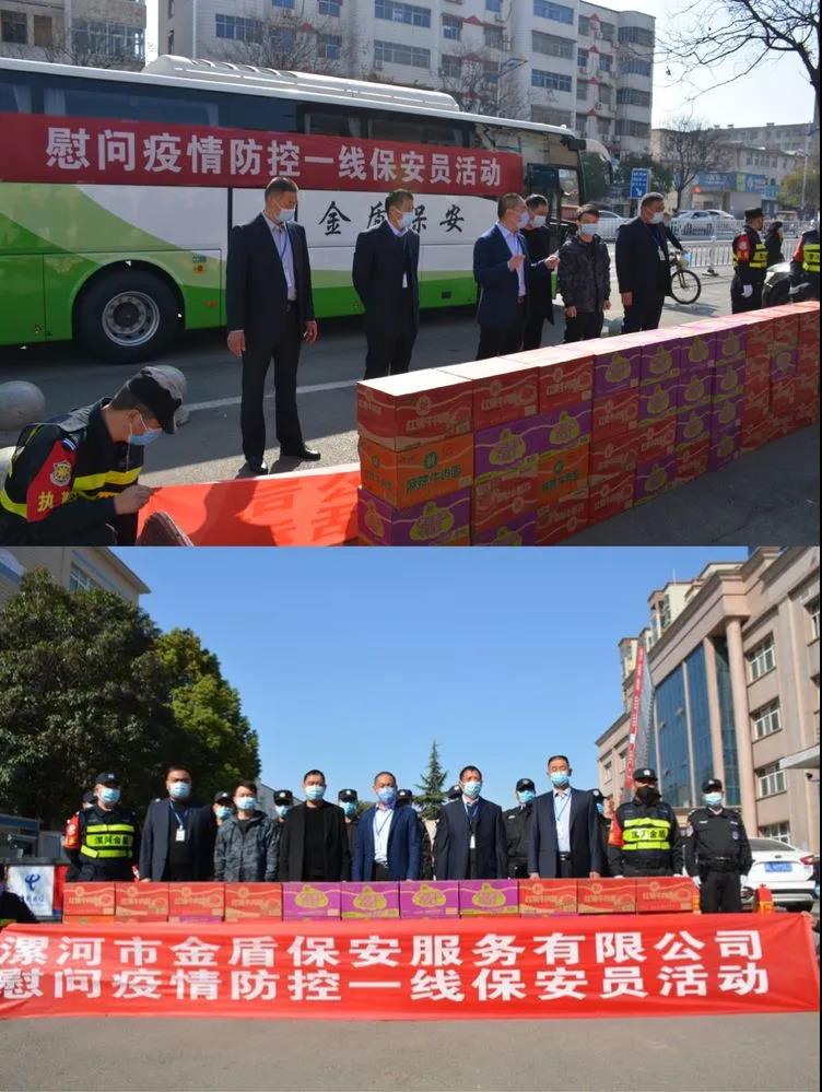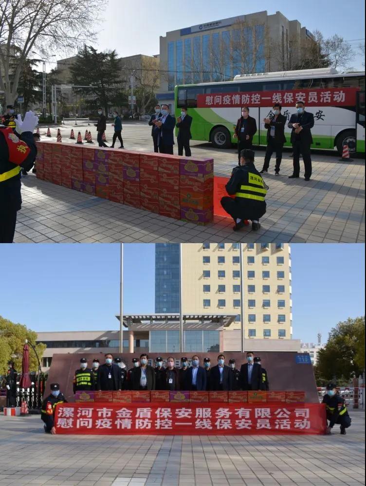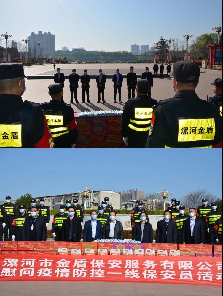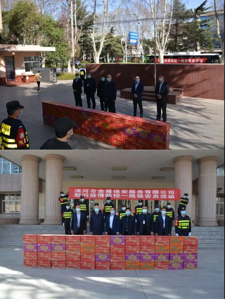 ▼漯河職業(yè)技術(shù)學(xué)院保衛(wèi)處處長王洪克,科長牛春雨與公司領(lǐng)導(dǎo)班子共同慰問堅守在疫情防控一線的保安員代表。