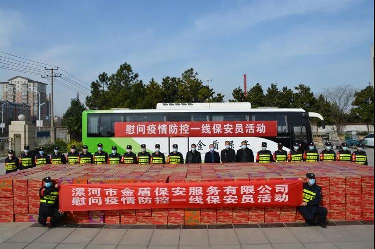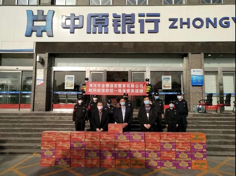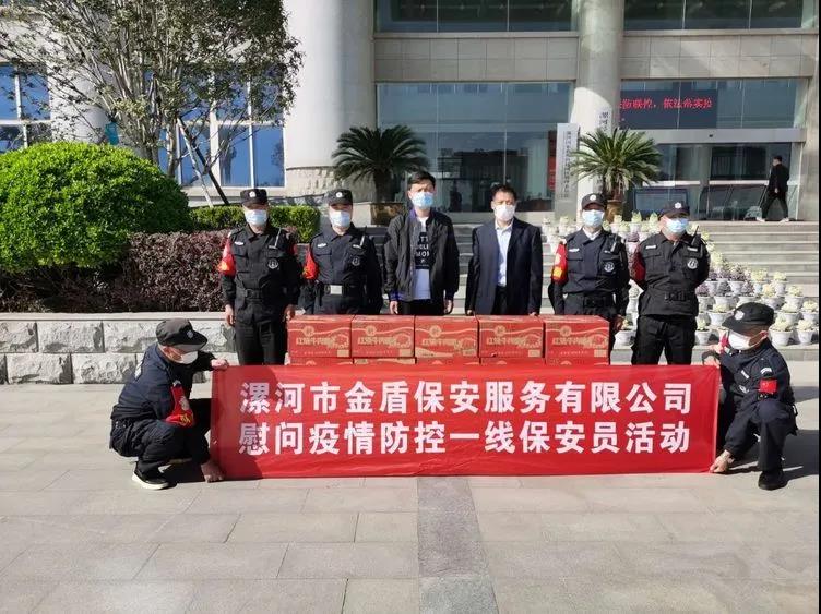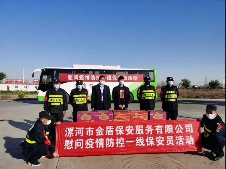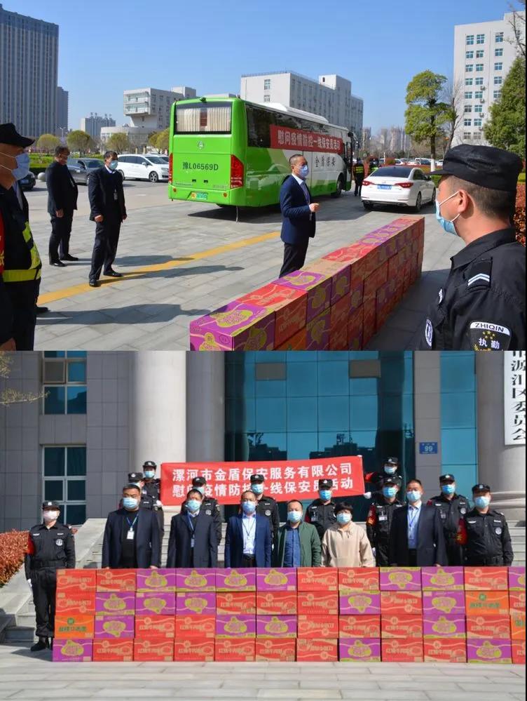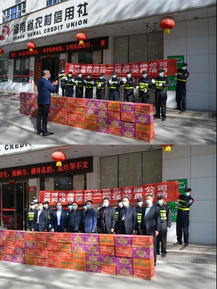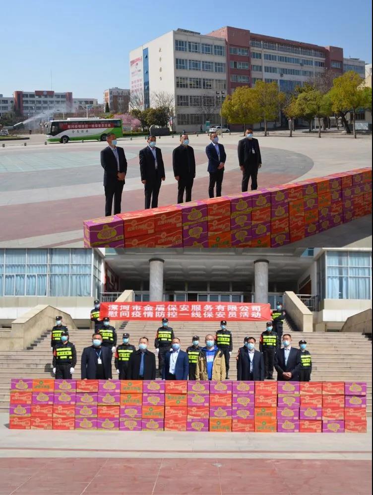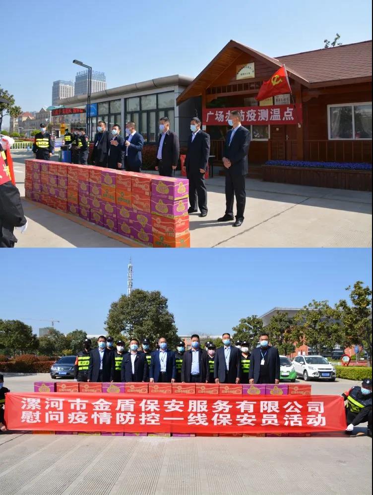 ▼漯河職業(yè)技術(shù)學(xué)院保衛(wèi)處處長王洪克,科長牛春雨與公司領(lǐng)導(dǎo)班子共同慰問堅守在疫情防控一線的保安員代表。