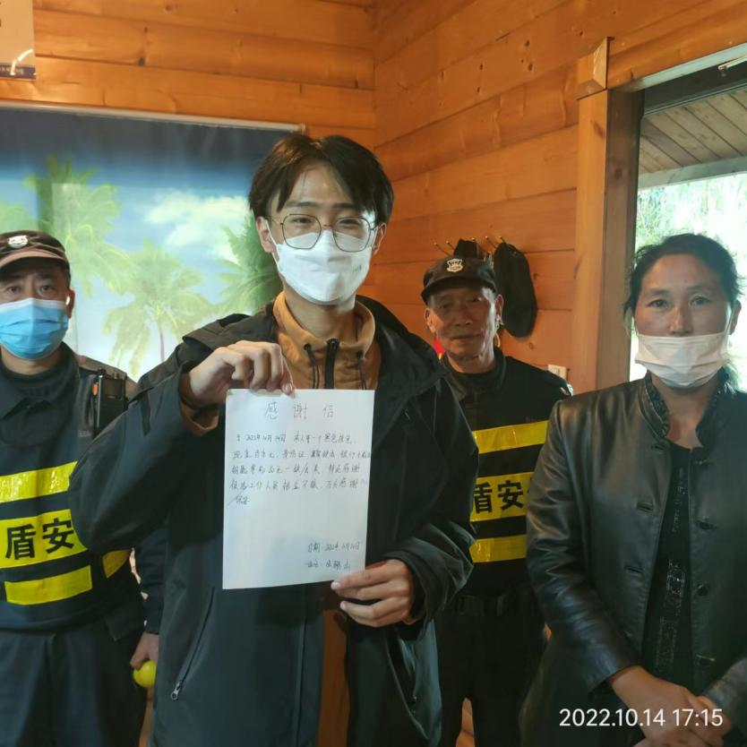 ? 恰巧的是,當日的值班保安吳軍嶺在執(zhí)勤時,發(fā)現在健身器材上掛著一個小包,于是撿起來送到了值班崗亭,等待失主前來認領。17點左右失主前來景區(qū)尋找,經核實包內物品并查看監(jiān)控錄相確認無誤后,保安員吳軍嶺親手將包還給了失主?!胺浅8兄x,沒想到我的包還能找到,你真是個拾金不昧的好保安呀!”失主激動地握著保安員吳軍嶺的手連連道謝并寫下感謝信以示感謝。